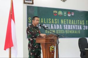 Suarapesisirnusantara.com |BENGKALIS – Dandim 0303/Bengkalis Letkol Arh Irvan Nurdin,S.E.,M.M Melaksanakan Sosialisasi Netralitas TNI Kodim 0303/Bengkalis Pada Pilkada Serentak Tahun 2024 bertempat di Aula Makodim 0303/Bengkalis Jln.Bantan Kec. Bengkalis Kab. Bengkalis, Jumat 2 Agustus 2024 pukul 09.00 WIB.