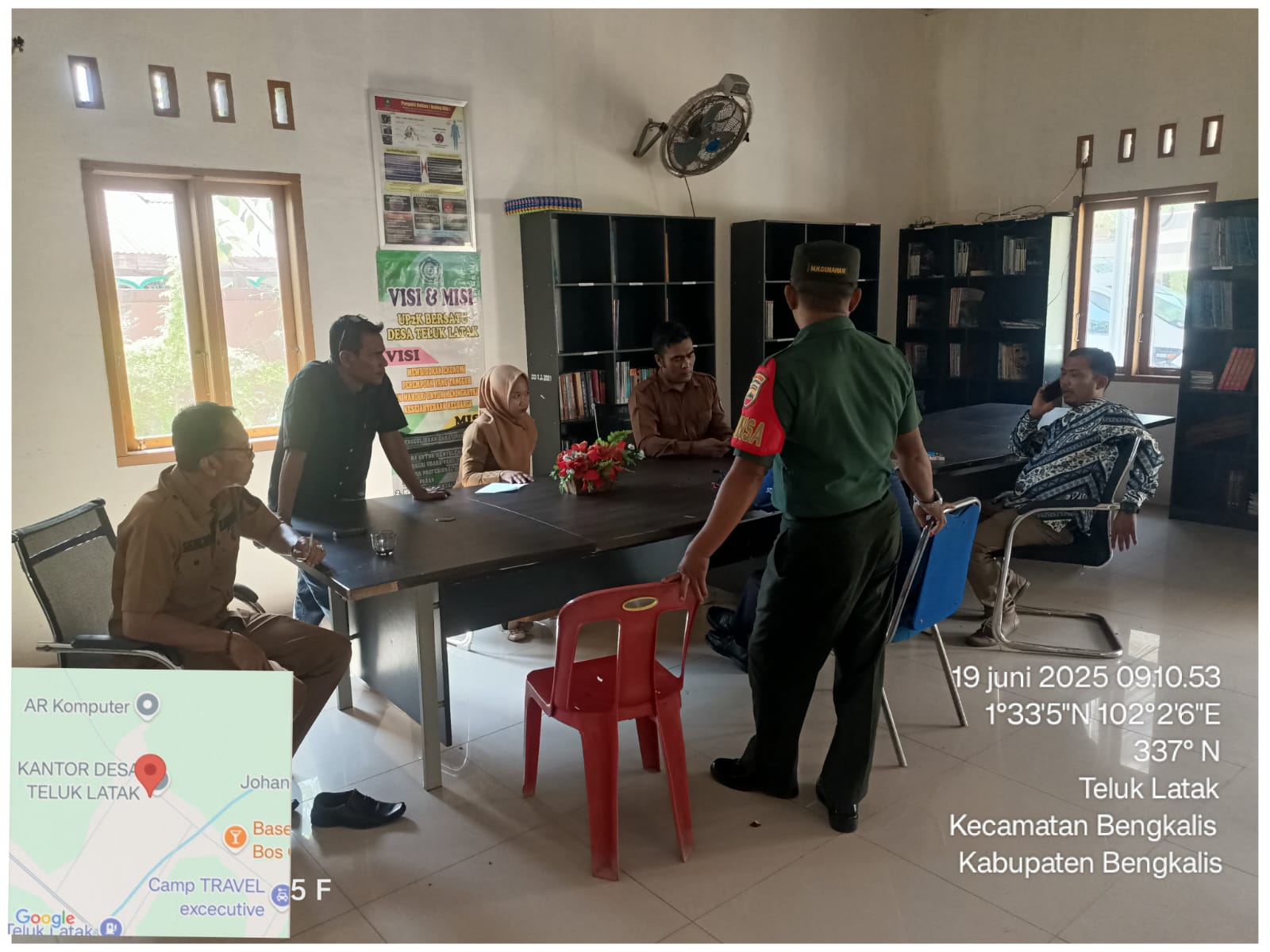 Suarapesisirnusantara.com |BENGKALIS – Babinsa Koramil 01/Bengkalis Serda M.H. Gunawan melaksanakan kegiatan komunikasi sosial bersama masyarakat binaan di Kampung Pancasila di Desa Teluk Latak Kecamatan Bengkalis Kab. Bengkalis, Kamis 19 Juni 2025 pukul 09.00 WIB sampai dengan selesai.