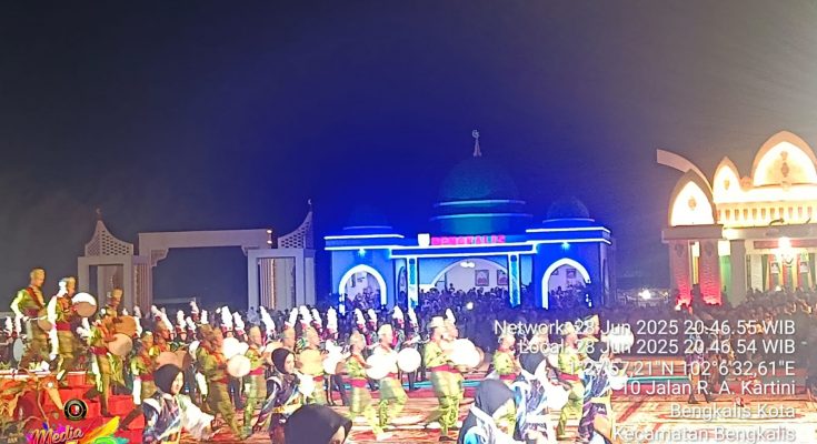 Suarapesisirnusantara.com |BENGKALIS- Kabupaten Bengkalis sebagai tuan rumah pelaksanaan Musabaqah Tilawatil Qur’an (MTQ) ke-43 tingkat Provinsi Riau tahun 1447 Hijriah – 2025 Masehi, pada prosesi pembukaan mengusung konsep inovatif bernuansa Pesisir, ini dilihat dari tampilan astaka utamanya berdiri megah di tepian lapangan pasir Pantai Andam Dewi di jantung kota Bengkalis. Sebagaimana pantauan media ini secara langsung dari lokasi perhelatan, Sabtu malam (28/06/2025).
