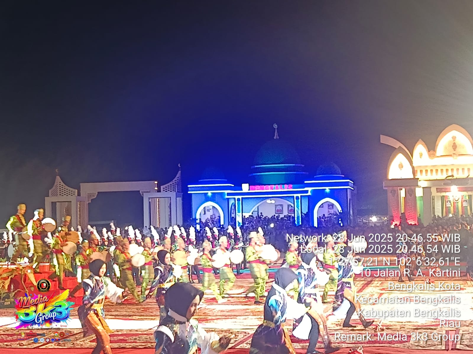 Suarapesisirnusantara.com |BENGKALIS- Kabupaten Bengkalis sebagai tuan rumah pelaksanaan Musabaqah Tilawatil Qur’an (MTQ) ke-43 tingkat Provinsi Riau tahun 1447 Hijriah – 2025 Masehi, pada prosesi pembukaan mengusung konsep inovatif bernuansa Pesisir, ini dilihat dari tampilan astaka utamanya berdiri megah di tepian lapangan pasir Pantai Andam Dewi di jantung kota Bengkalis. Sebagaimana pantauan media ini secara langsung dari lokasi perhelatan, Sabtu malam (28/06/2025).