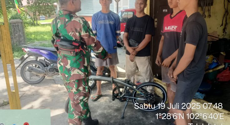Suarapesisirnusantara.com |BENGKALIS – Babinsa Koramil 01/Bengkalis Serda M.H. Gunawan melaksanakan kegiatan komunikasi sosial bersama masyarakat binaan di Kampung Pancasila di Desa Teluk Latak Kecamatan Bengkalis Kab. Bengkalis, Sabtu 19 Juli 2025 pukul 09.30 WIB sampai dengan selesai.