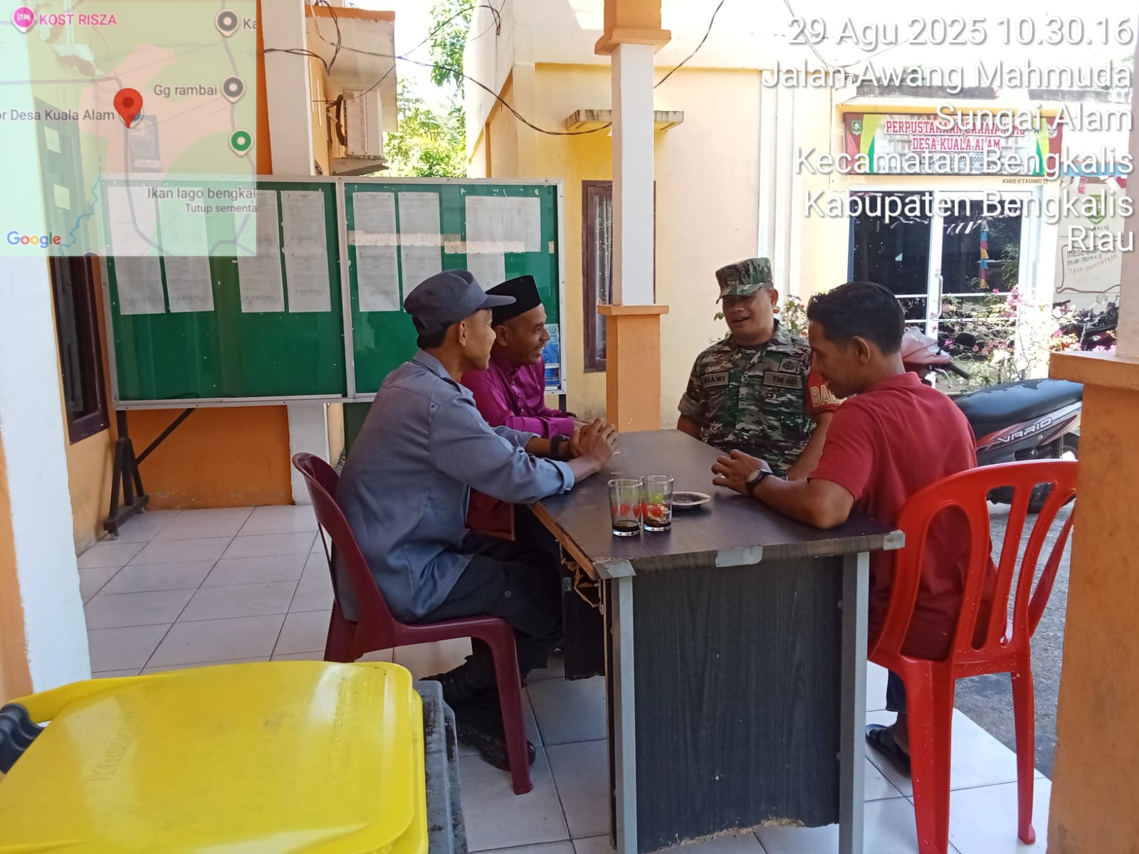 Suarapesisirnusantara.com |BENGKALIS – Babinsa Koramil 01/Bengkalis Serda Asnawi melaksanakan kegiatan komunikasi sosial bersama masyarakat binaan di Kampung Pancasila di Desa Kuala Alam Kecamatan Bengkalis Kabupaten Bengkalis, Jum’at 29 Agustus 2025 pukul 10.00 WIB sampai dengan selesai.
