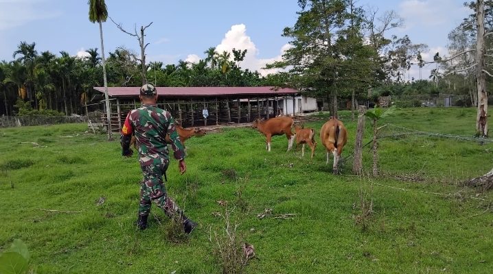Babinsa Koramil 01 Lakukan Pengecekan Hewan Ternak Upaya Cegah PMK