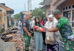 Suarapesisirnusantara.com |Bengkalis – Babinsa Koramil 01/Bengkalis Serka Subarianto(Batuud) dan PSMTI Kab. Bengkalis memberi batuan sembako kepada warga yang terkena musibah kebakaran rumah diwilayah Kelurahan Kota Bengkalis kecamatan Bengkalis, Minggu 12 Oktober 2025 pukul 10.00 wib.