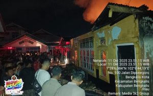Suarapesisirnusantara.com | Bengkalis- Telah terjadi kebakaran hebat yang berlokasi di jalan Pahlawan Gg. Tenaga Kelurahan Bengkalis Kota Kecamatan Bengkalis, Sabtu (11/10/2025).