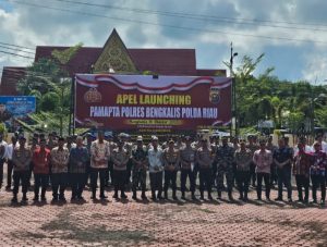 Suarapesisirnusantara.com |Bengkalis- Apel Launching Pamapta Polres Bengkalis Jajaran Polda Riau di hadiri oleh Dandim 0303/Bengkalis yang diwakili oleh Kasdim 0303/Bengkalis Mayor Inf Suratno, di Markas Komando Polres Bengkalis, Jalan Petanian Desa Senggoro Kecamatan Bengkalis, Kabupaten Bengkalis, Kamis (16/10/2025).