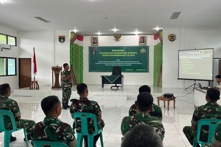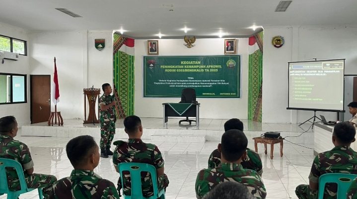 Suarapesisrnusantara.com |Bengkalis – Personil Makodim mengikuti Kegiatan Peningkatan Kemampuan Apkowil Tersebar Kodim 0303/Bengkalis TA 2025, bertempat diAula Makodim 0303/Bengkalis di Jln. Bantan Tua Kec. Bengkalis Kab. Bengkalis, Rabu 22 Oktober 2025 Pukul 08.00 WIB.