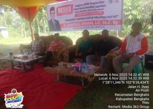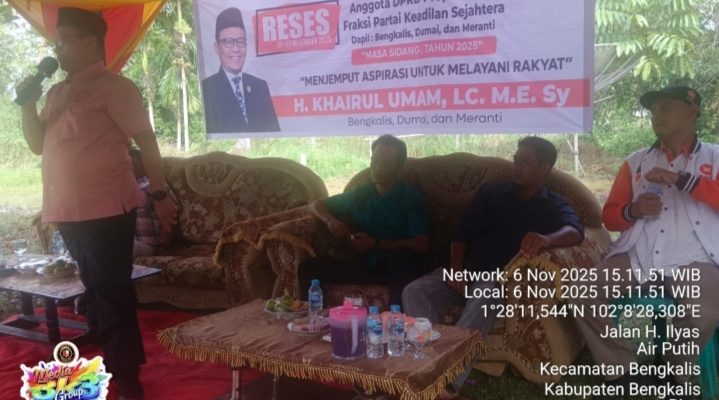 Suarapesisirnusantara.com |Bengkalis- Reses H. Khairul Umam, Lc., M.E.Sy., Anggota DPRD Riau Fraksi Partai Keadilan Sejahtera (PKS) di Desa Air Putih Dusun Panglima Minal dengan tema “Menjemput Aspirasi Untuk Melayani Rakyat”, Kamis (06/11/2025).