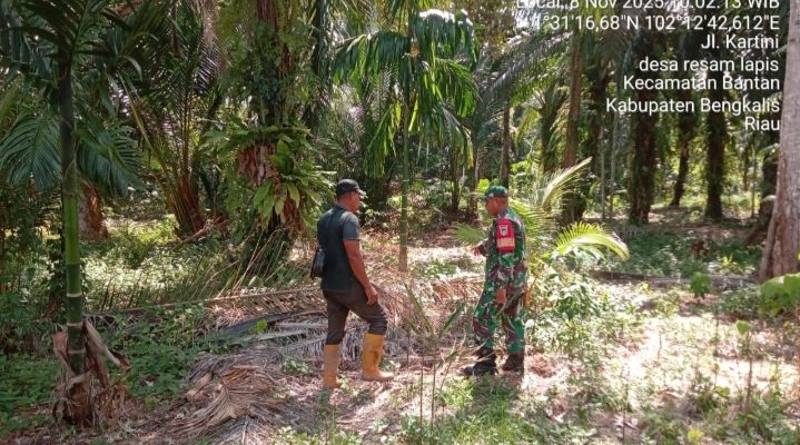 Suarapesisirnusantara.com |Bantan – Dalam rangka mencegah terjadinya kebakaran hutan dan lahan (Karhutla) Babinsa Koramil 01 Bengkalis Sertu Armansyah dan Sertu Amad Zamzuri bersama 2 orang MPA desa melakukan Patroli Karhutla di Desa Berancah Kecamatan Bantan Kabupaten Bengkalis, Sabtu 8 November 2025 Pukul 09.00 Wib.