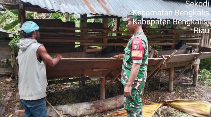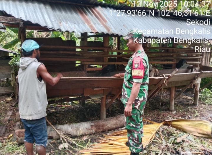 Suarapesisirnusantara.com |Bengkalis -Babinsa Koramil 01 Sertu Muzainudin melaksanakan pengecekan hewan ternak dalam rangka mencegah penyakit PMK pada hewan ternak yang bertempat Di Desa Sekodi Kecamatan Bengkalis Kabupaten Bengkalis, Rabu 12 November 2025 Pukul 09.47 Wib.