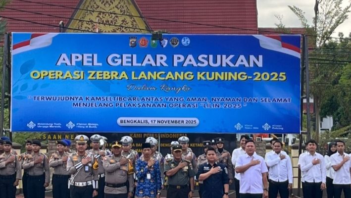 Suarapesisirnusantara.com |Bengkalis – Dandim 0303/Bengkalis Diwakili Kasdim 0303/Bengkalis Mayor Inf Suratno Mengikuti Apel Gelar Pasukan Operasi Zebra Lancang Kuning Tahun 2025 Bertempat di Halaman Mapolres Bengkalis Jln. Pertanian Desa Senggoro Kec. Bengkalis Kab. Bengkalis, Senin 17 November 2025 Pukul 07.40 WIB.