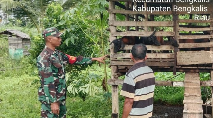 Suarapesisirnusantara.com |Bengkalis -Babinsa Koramil 01 Sertu Muzainudin melaksanakan pengecekan hewan ternak dalam rangka mencegah penyakit PMK pada hewan ternak yang bertempat Di Desa Sekodi Kecamatan Bengkalis Kabupaten Bengkalis, Rabu 19 November 2025 Pukul 09.47 Wib.