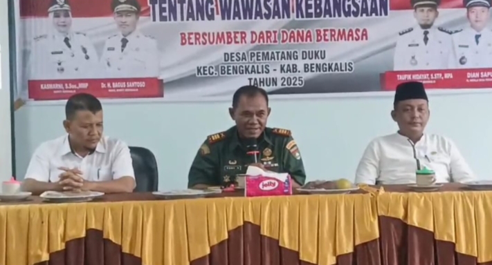 Suarapesisirnusantara.com |Bengkalis -Danramil 01 Bengkalis Kapten Arm Yogi Sudarso. Sebagai Nara Sumber dalam Kegiatan Sosialisasi Wawasan Kebangsaan Dan Bela Negara kepada pemuda pemudi di Gedung Serbaguna jln Binjai Desa Pematang Duku kec Bengkalis Kab. Bengkalis, Rabu 19 Nopember 2025, Pukul 14.00 Wib.