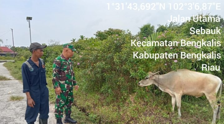 “Kita lakukan pengecekan hewan ternak milik Ilham 28 tahun yang kita laksanakan Di Desa Sebauk sebanyak 1 ekor sapi dengan tujuan agar seluruh hewan ternak diwilayah Binaan Koramil 01/Bengkalis tetap termonitor dan terpantau adanya indikasi PMK,”ucap Serma Rayen.