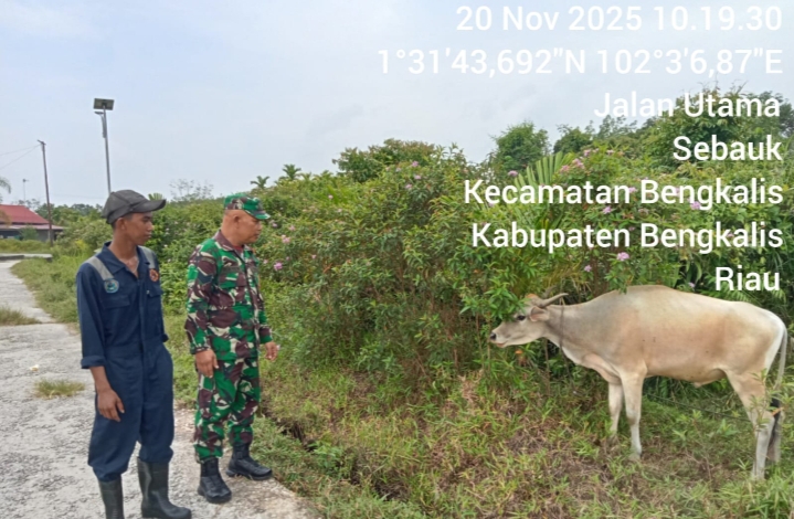Suarapesisirnusantara.com |Bengkalis -Babinsa Koramil 01 Serma Rayen melaksanakan pengecekan hewan ternak dalam rangka mencegah penyakit PMK pada hewan ternak yang bertempat Di Desa Sebauk Kecamatan Bengkalis Kabupaten Bengkalis, Kamis 20 November 2025 Pukul 10.16 Wib.