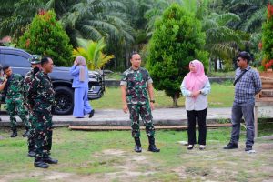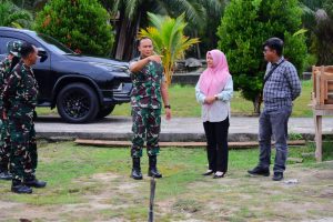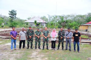 Kunjungan rombongan Dandim disambut hangat Pj Kepala Desa Bantan Tua Ners Harmidayanti, S.Kep bersama perangkat Desa guna melihat proses pembangunannya.