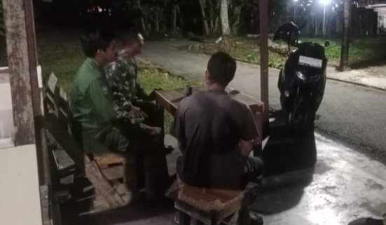 Patroli Siskamling gabungan bersama Ketua Pemuda dan Karang Taruna Wilayah Koramil 01/Bengkalis selesai dalam keadaan aman dan kondusif.