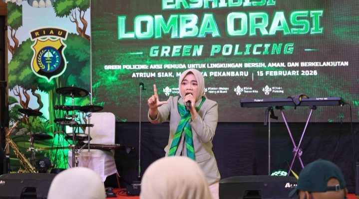 Suarapesisirnusantara.com Pekanbaru – Polda Riau telah menyelesaikan Ekshibisi Lomba Orasi Green Policing 2026, agenda puncak diselenggarakan di Atrium Mal SKA Pekanbaru, Minggu (15/2/2026) dengan tema ‘Aksi Pemuda untuk Lingkungan Bersih, Aman, dan Berkelanjutan’.