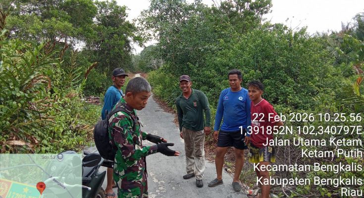 Suarapesisirnusantara.com |BENGKALIS – Babinsa Koramil 01/Bengkalis Serka Sinambela melaksanakan kegiatan komunikasi sosial di Kampung Pancasila Desa Sungai Batang Kecamatan Bengkalis Kabupaten Bengkalis, Minggu 22 Februari 2026 pukul 10.00 WIB sampai dengan selesai.
