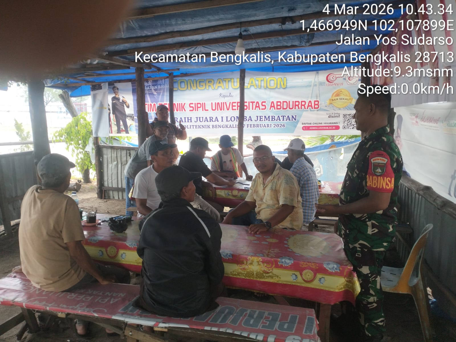 Suarapesisirnusantara.com |BENGKALIS – Babinsa Koramil 01/Bengkalis Sertu Alimran melaksanakan kegiatan komunikasi sosial di Kampung Pancasila di Keluhan Kota Kecamatan Bengkalis Kabupaten Bengkalis, Rabu 04 Maret 2026 pukul 09.30 WIB sampai dengan selesai.