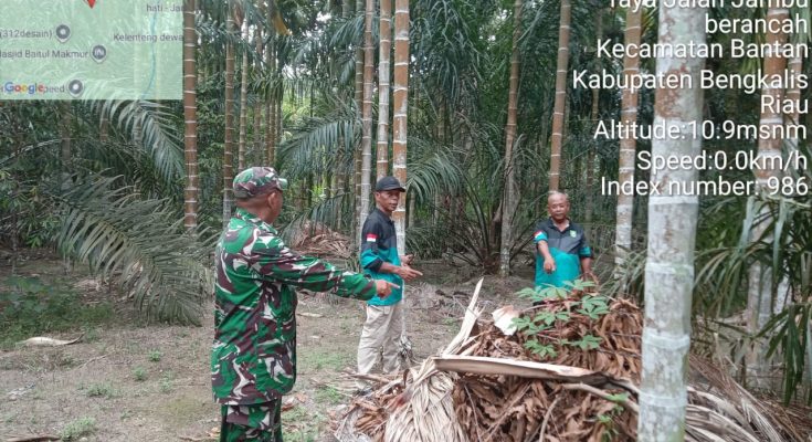 Suarapesisirnusantara.com |Bantan – Dalam rangka mencegah terjadinya kebakaran hutan dan lahan (Karhutla) Babinsa Koramil 01 Bengkalis Sertu Armansyah dan Sertu Andi Kesuma bersama MPB 2 orang, melakukan Patroli Karhutla di Desa Berancah Kecamatan Bengkalis Kabupaten Bengkalis, Kamis 16 April 2026.