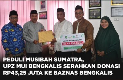 Suarapesisirnusantara.com |BENGKALIS — Majlis Ulama Indonesia (MUI) Kabupaten Bengkalis serahkan donasi musibah Sumatra dengan total nilai sebesar Rp43.250.000, kepada...