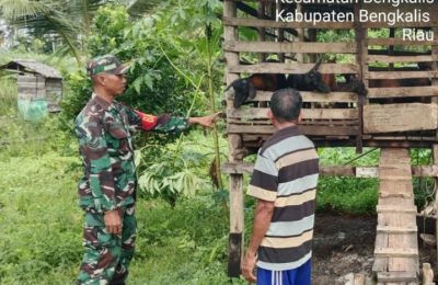 Suarapesisirnusantara.com |Bengkalis -Babinsa Koramil 01 Sertu Muzainudin melaksanakan pengecekan hewan ternak dalam rangka mencegah penyakit PMK pada hewan ternak...