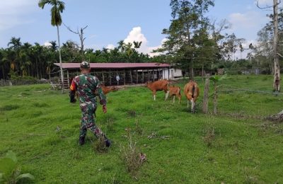 Babinsa Koramil 01 Lakukan Pengecekan Hewan Ternak Upaya Cegah PMK