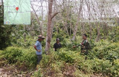 Cegah Karhutla, Babinsa Koramil 01 Bengkalis Lakukan Patroli Wilayah Hutan dan Kebun Bersama Warga