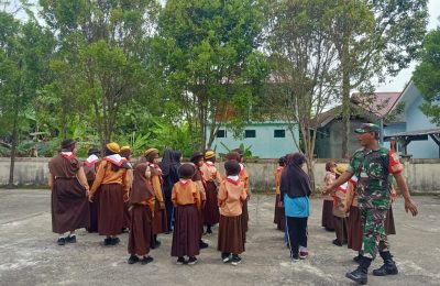 Serka Subarianto Giat Komsos PBB Kepada Anak Pramuka di Desa MESKOM’, Bengkalis