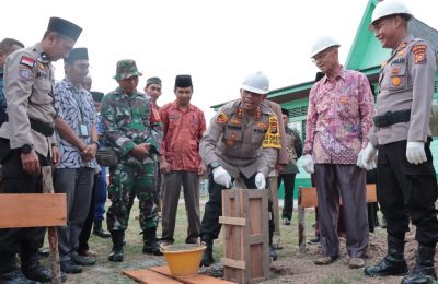 Kapolres Meranti A.K.B.P Kurnia Setyawan S.H, S.I.K Peletakan Batu Pertama Pos Bhabinkamtibmas Desa Bokor