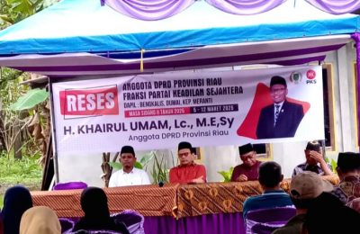 Suarapesisirnusantara.com |Bengkalis – Anggota DPRD Propinsi Riau Fraksi Partai Keadilan Sejahtera H. Khairul Umam, Lc.M.E.Sy menggelar reses masa persidangan II Tahun...
